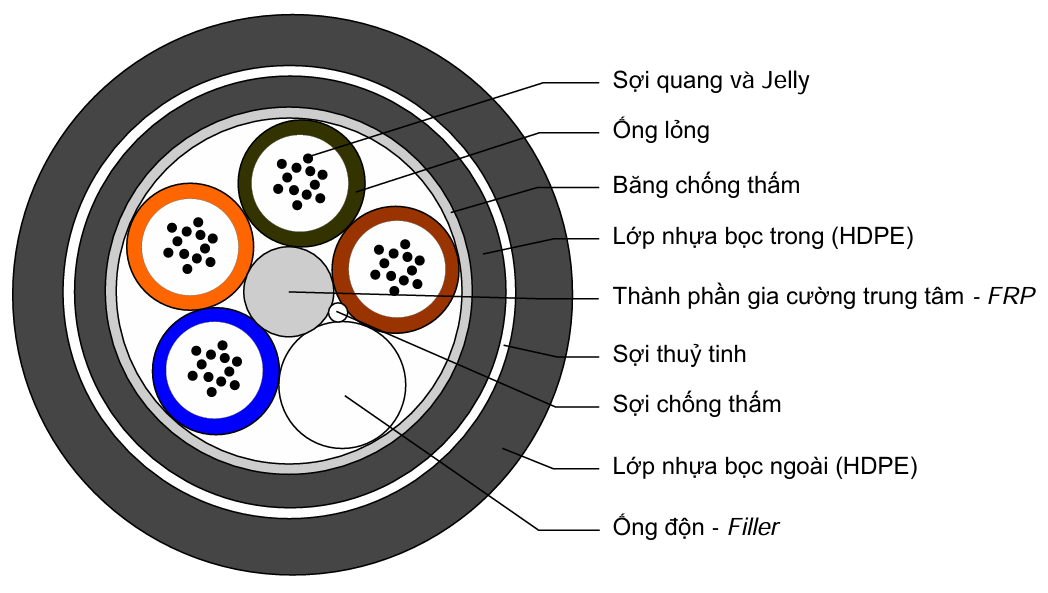 CHỈ TIÊU KỸ THUẬT CÁP SỢI QUANG CHÔN TRỰC TIẾP PHI KIM LOẠI 32FO~60FO