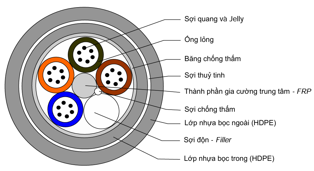 CHỈ TIÊU KỸ THUẬT CÁP SỢI QUANG CHÔN TRỰC TIẾP PHI KIM LOẠI 4FO~30FO